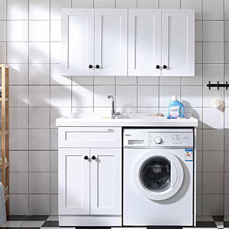 现代北欧实木洗衣机柜定制洗衣台带搓板一体组合白色柜K50153